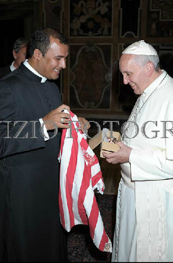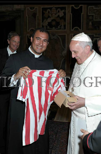 O papa falou: Só agora meu filho voce me trás a camisa para abençoar ? Esperou ser rebaixado para me pedir ajuda . Vamos fazer o seguinte próxima vez traga no começo do campeonato que eu dou jeito.