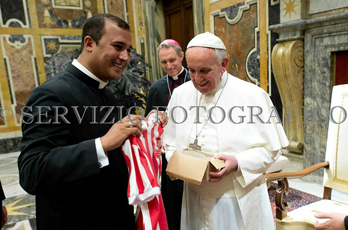 O Papa, ao receber a camisa: